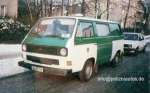 Diensthundeführerkraftfahrzeug mit verschlossenen Heckfenstern, Einzelblaulicht und ohne "Polizei"-Schriftzüge. Das Foto wurde Ende der 80er Jahre von Heinrich-Martin B. gemacht. |