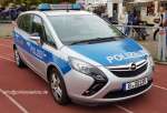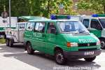 Diensthundeführerkraftfahrzeug der Polizei Berlin mit verschlossenen (verblechten) Heckfenstern. |