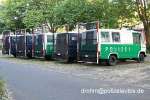 Die Absperrgitterkraftwagen der Berliner Polizei in blau und grün/weiß |