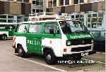 Funkstreifenwagen der Verkehrsdienste nach der Wende. Die Verkehrsdienste (VkD) übernahmen nach der Wende zahlreiche Fustw der Volkspolizei. Daneben waren die VkD mit VW Golf I - III, VW Jetta, Vento, VW Transporter T 3 und T 4 und Krädern ausgestattet. |