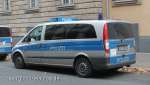 Funkstreifen- und Sicherungskraftwagen mit fest montierten Warnblitzern zur Heckabsicherung. Auf der Heckklappe befindet sich eine Magnettafel mit Fahrzeugkennung für die Verwendung in einer Einzeldiensthundertschaft. |