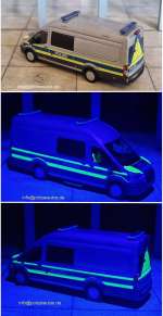 Das Basismodell von Wiking wurde neu lackiert und beschriftet und erhielt, die Scheiben wurden verdunkelt und Rundumleuchten wurden montiert. Umbau: Thomas Balzer |