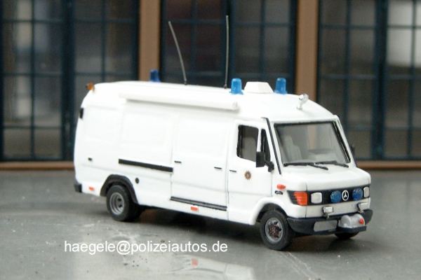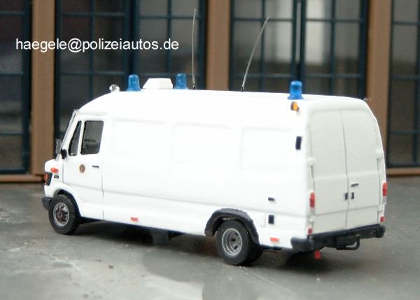 Für diesen Umbau waren zunächst umfangreiche Karosseriearbeiten nötig. Aus zwei herpa-Modellen wurde die Version mit langem Radstand zusammengefügt. Unter anderem wurden in diesem Zuge die Kotflügel verbreitert und die Hecktüren bis in das Hochdach verlängert. Beim Umbau des Fahrgestells mussten die Radkästen hinten so verändert werden, dass Platz für die Zwillingsbereifung entsteht. Entsprechende Räder wurden vom Iveco Daily von Busch verwendet. Für die abschließende Ausstattung des Modells wurde eine Vielzahl von Kleinteilen montiert, die zum Teil im Eigenbau entstanden. Dazu gehören eine Motorwinde, Zusatzscheinwerfer, Frontblitzer, Dachscheinwerfer, Blaulichter, Dachlautsprecher, Antennen, Markise, Zusatzblinker, seitliche Reflektoren, eine Anhängerkupplung und eine Nebelschlussleuchte (Haegele).