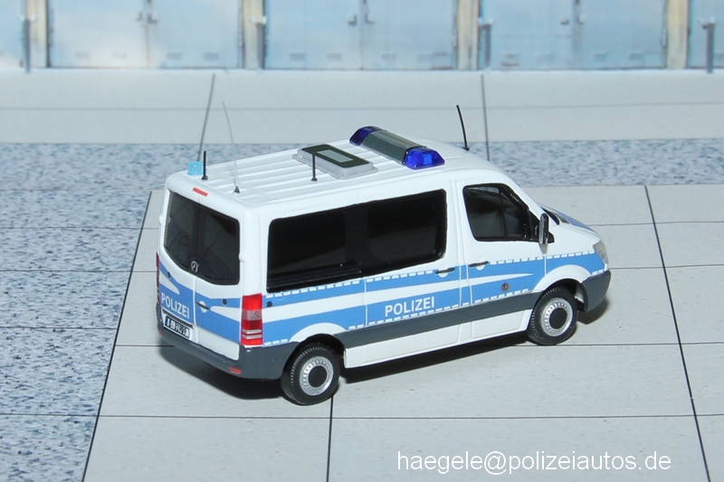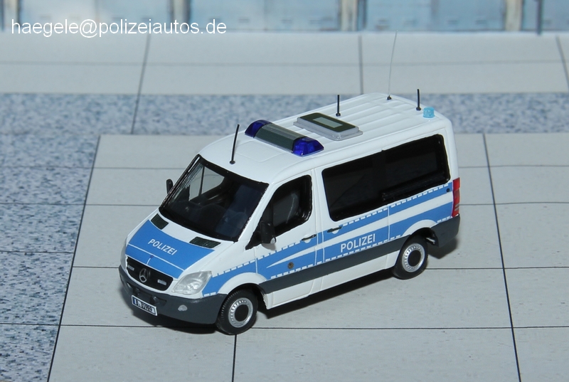 Eigenbauten, Berlin 1:87 Mercedes-Benz Sprinter, kurz, HGruKW Grundmodell: Eigenbau Maßstab:1:87 Einsatzgebiet des Vorbilds: Gruppen- und Mannschaftskraftwagen Berlin7093 Aufrufe seit 09.08.2012 Auf Basis einer Kleinstserie aus Resin entstand die Version des Halbgruppenkraftwagens in der Bundesausführung. Die Decals wurden über die Firma DS-Design hergestellt (Haegele). Zur Liste --- Serien- oder Sondermodelle --- Maßstab 1:43- Polizei Brandenburg 1:43- Bundespolizei (ehem. BGS ) 1:43- Polizei Hamburg 1:43- Polizei Niedersachsen 1:43- Polizei Nordrhein-Westfalen 1:43- Polizei Bayern 1:43- Polizei Berlin 1:43- Volkspolizei 1:43 Maßstab 1:87- Bundespolizei (1:87)- Feldjäger 1:87- Polizei Bremen 1:87- Polizei Hamburg 1:87- Bundesgrenzschutz (1:87)- Polizei Mecklenburg-Vorpommern 1:87...- Ordnungsamt (1:87)- Polizei Baden-Württemberg 1:87- Polizei Bayern 1:87- - Bereitschaftspolizei Bayern 1:87- - Kleintransporter (seriennah), Bayer...- - Pkw (seriennah), Bayern 1:87- Polizei Berlin 1:87- - Eigenbauten, Berlin 1:87- - Kleintransporter (seriennah), Berli...- - LKW (seriennah), Berlin 1:87- - PKW (seriennah), Berlin 1:87- Polizei Brandenburg 1:87- Polizei Hessen 1:87- Polizei Niedersachsen 1:87- Polizei Nordrhein-Westfalen 1:87- Erprobungsfahrzeuge 1:87- Polizei Rheinland-Pfalz 1:87- Polizei Sachsen 1:87- Polizei Schleswig Holstein 1:87- Polizei Thüringen 1:87- Polizei Sachsen-Anhalt 1:87- Volkspolizei 1:87- Modelle im Einsatz (Dioramen) 1:87- Zoll 1:87 Maßstab 1:160 Sonstige Maßstäbe