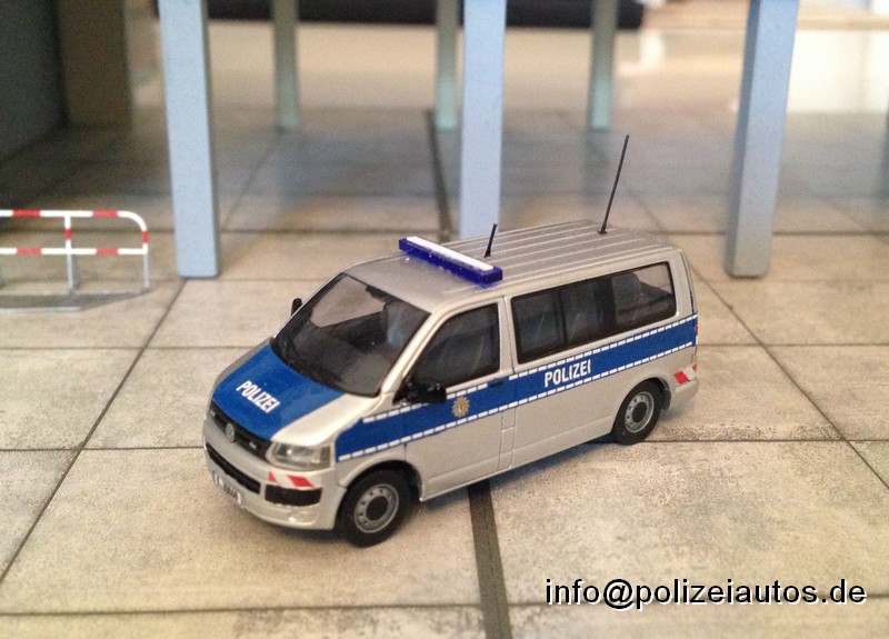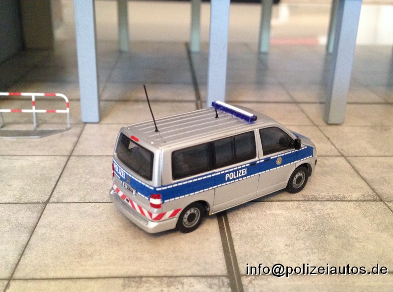 Das Grundmodell von Rietze wurde zunächst zerlegt und mittels Airbrush in Silber lackiert. Nach dem Trocknen wurden die Motorhaube und die Bauchbinden in blau lackiert. Danach wurden Decals der Firma Ds-Design angebracht sowie Blaulichtern, Kennzeichen und Antennen montiert