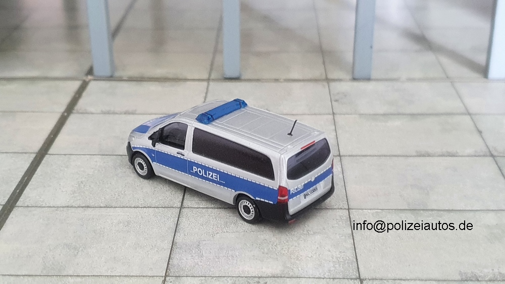 Das Grundmodell von Busch wurde zerlegt, mittels Airbrush in silber lackiert und anschließend mit Decals von SRM87 versehen. Weiterhin wurden sämtliche Details wie Blaulichter ( Blaulichtbalken von shapeways) und eine Antenne angebracht.