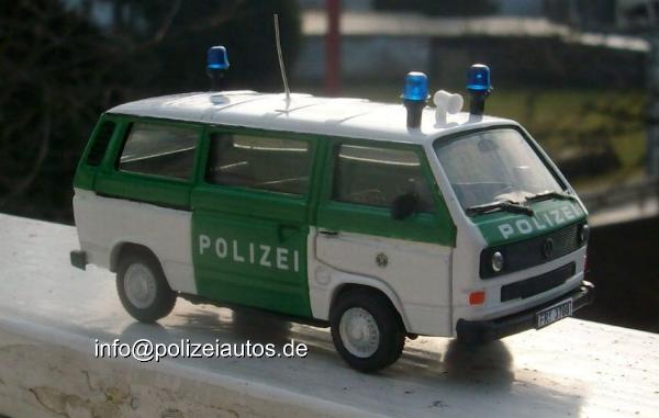 Polizei Baden-Württemberg 1:87 VW Transporter T3 Grundmodell: Herpa Maßstab:1:87 Einsatzgebiet des Vorbilds: Funkstreifenwagen (VW) B-W5424 Aufrufe seit 27.02.2011 Ein Herpa-Modell wurde neu lackiert und mit Blaulichtern und Lautsprecher von Roco ausgestattet. Die Beschriftungs-Decals stammen von Müller und TL-Decals. Selbst angefertigte Kennzeichen runden das Modell ab. Umbau: Thomas Engel Zur Liste --- Serien- oder Sondermodelle --- Maßstab 1:43- Polizei Brandenburg 1:43- Bundespolizei (ehem. BGS ) 1:43- Polizei Hamburg 1:43- Polizei Niedersachsen 1:43- Polizei Nordrhein-Westfalen 1:43- Polizei Bayern 1:43- Polizei Berlin 1:43- Volkspolizei 1:43 Maßstab 1:87- Bundespolizei (1:87)- Feldjäger 1:87- Polizei Bremen 1:87- Polizei Hamburg 1:87- Bundesgrenzschutz (1:87)- Polizei Mecklenburg-Vorpommern 1:87...- Ordnungsamt (1:87)- Polizei Baden-Württemberg 1:87- Polizei Bayern 1:87- - Bereitschaftspolizei Bayern 1:87- - Kleintransporter (seriennah), Bayer...- - Pkw (seriennah), Bayern 1:87- Polizei Berlin 1:87- - Eigenbauten, Berlin 1:87- - Kleintransporter (seriennah), Berli...- - LKW (seriennah), Berlin 1:87- - PKW (seriennah), Berlin 1:87- Polizei Brandenburg 1:87- Polizei Hessen 1:87- Polizei Niedersachsen 1:87- Polizei Nordrhein-Westfalen 1:87- Erprobungsfahrzeuge 1:87- Polizei Rheinland-Pfalz 1:87- Polizei Sachsen 1:87- Polizei Schleswig Holstein 1:87- Polizei Thüringen 1:87- Polizei Sachsen-Anhalt 1:87- Volkspolizei 1:87- Modelle im Einsatz (Dioramen) 1:87- Zoll 1:87 Maßstab 1:160 Sonstige Maßstäbe