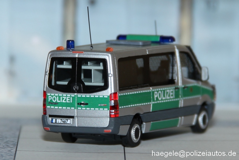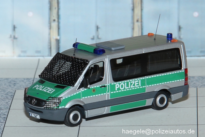 Das Grundmodell wurde neu lackiert, mit passenden Folien beklebt und einigen Details (Blaulichter, Signalhörner, Zusatzblinker, Antennen, Kennzeichen, Dachluke, Vergitterung der Frontscheibe und Scheinwerfer) ausgestattet. Zudem musste die Innenausstattung dem Original angepasst werden; dazu wurden u. a. Ablagefächer hinter den Hecktüren eingebaut (Haegele).