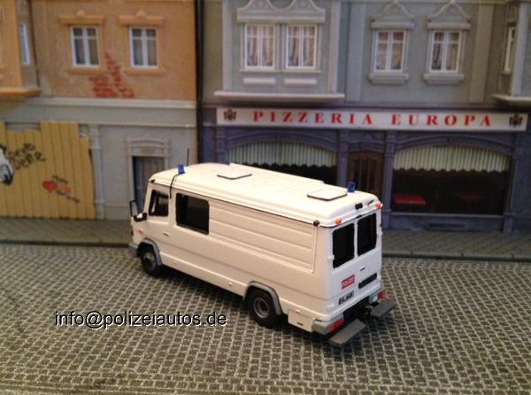 Bei einem Kastenwagen von Praliné wurden zunächst die seitlichen und hinteren Fenster ausgefräst. Danach wurden Details wie Blaulichter, Frontblitzer, Markise, Magnetschilder, Trittstufe, Anhängerkupplung, Arbeitsscheinwerfer, Dachlucken und Antennen angebracht. Umbau: Robert Augustin