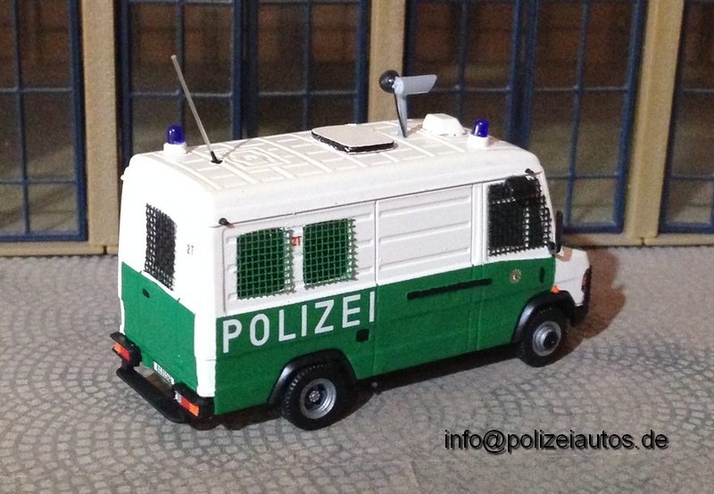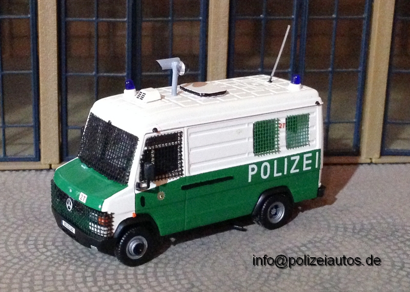 Bei dem Grundmodell von Herpa mussten zunächst die hinteren Fenster und die Tür eingearbeitet werden. Das Modell wurde danach zweifarbig lackiert. Zuletzt wurden die Fenster, die Scheinwerfer und der Kühlergrill vergittert. Abschließend wurden Details wie eine Dachluke, die Blaulichter, eine WA-3 Sondersignalanlage, die Videokamera mit Scheinwerfer, Polizeischriftzüge, Hoheitszeichen, taktische Kennung T2,Kennzeichen und einer Antenne montiert.