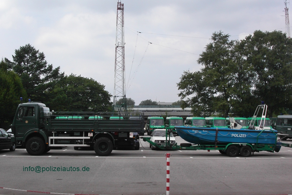 | Beschreibung: | Lastkraftwagen (Plane/Spriegel) der Bereitschaftspolizei Hamburg mit angehängtem, trailerbaren Mehrzweckboot (MZB 55) Schirrmeister Koch (2003). Fotos: Michael Hinz |
