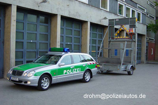 Der Einsatzwagen Autobahn MB E-Klasse mit dem Sicherungsanhänger der Autobahnmeisterei Berlin