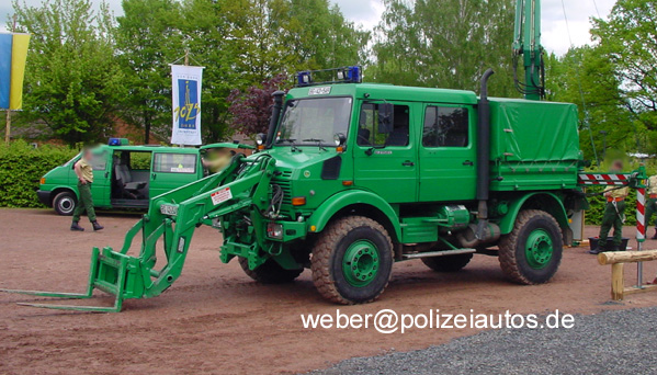 Beschreibung: Zugmaschine mit Ladeschaufel, Ladekran und zusätzlichen Arbeitsscheinwerfern auf dem Führerhausdach. Technische Daten: Zul. Gesamtgewicht: 12000kg - Nutzlast: 2480kg - Motor: 8 Zyl. 4-Takt-Diesel - 214 PS/ 155kw - Getriebe: 8 Vor- und 8 Rückwärtsgänge - Heckantrieb - Allrad und Geländeübersetzung zuschaltbar - Höchstgeschwindigkeit: 88 km/h. Ausstattung: Fahrerkabine mit 5 Sitzplätzen - Seilwinde Werner, Zugkraft nach vorn 5t (50m Seil), nach rückwärts 10t (25m Seil) - Schaufel (Ladevolumen 06´,0,8 Kubikmeter - Hubkraft: 1,2 -4,5t