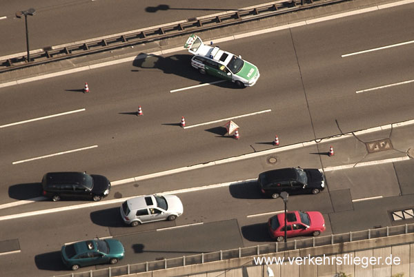 | Beschreibung: | Mangelhaft gesicherte Bierkästen, die während der Fahrt verrutschten. Die BAB 100 musste anschließend komplett gesperrt werden. Foto: www.verkehrsflieger.de |