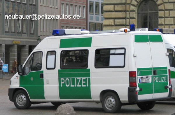 | Beschreibung: | Leichter Befehlskraftwagen der Bereitschaftspolizei des Landes Baden-Württemberg in der Version ohne Heckfenster. |