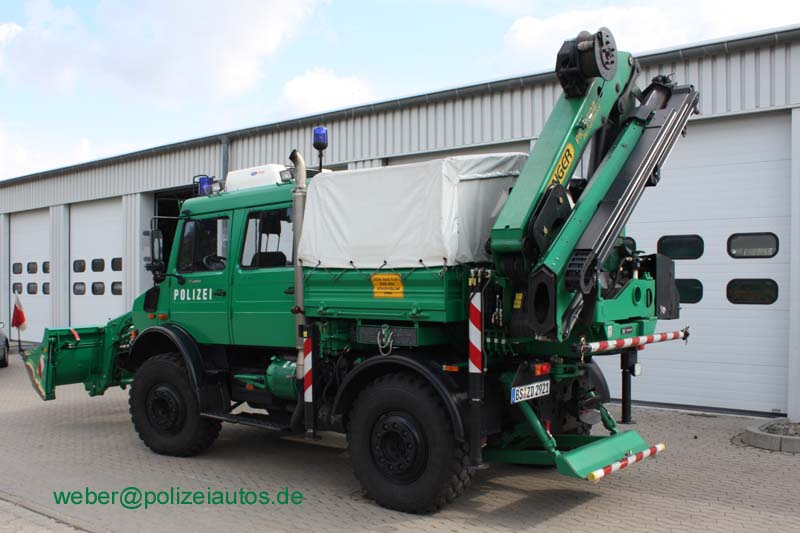 | Beschreibung: | Zugmaschine der Bereitschaftspolizei Niedersachsen mit Ladeschaufel und Palfinger-Ladekran, sowie diversem anderen, technischen, Gerät. Diese Zugmaschine besitzt einen anderen POLIZEI-Schriftzug. |