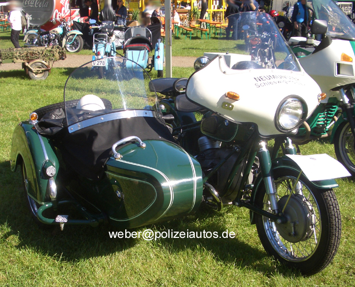 | Beschreibung: | Streifenkrad mit Beiwagen Technische Daten: Gesamtmasse: 600kg Leergewicht: 303kg Hubraum: 590ccm Erstzulassung: August 1963 Leistung: 30 PS/ 5800 U/min Kraftstoff: Normalbenzin vormaliges Kennzeichen: HL-3077. Das Krad war bis zu seiner Aussonderung (vermutlich 1978) bei der PD Schleswig-Holstein Süd als Schulungsfahrzeug eingesetzt. |