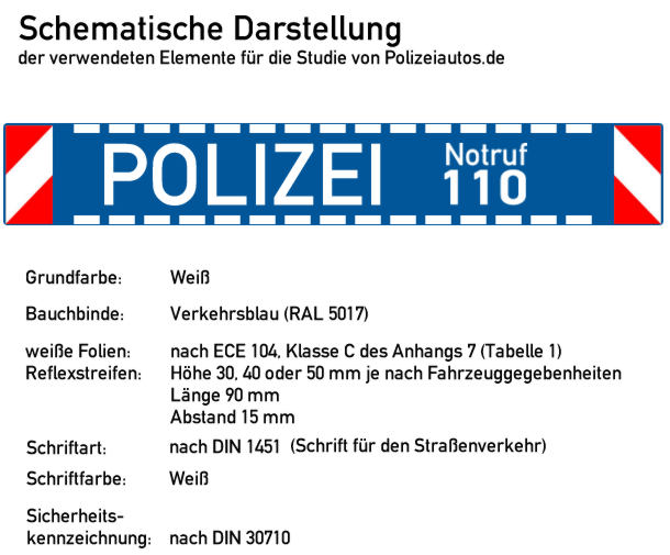 | Beschreibung: | Bitte beachten Sie zu dieser Fotomontage die Hinweise in der Kategoriebeschreibung sowie die Umfrage im Forum! Grundlage für die Montage ist dieses Foto. Die Gestaltung wurde geändert, indem neben den neu ergänzten Warnmarkierungen die seitlichen blauen Streifen breiter ausgeführt wurden. Dadurch konnte ein größerer POLIZEI-Schriftzug und der Hinweis auf die Rufnummer 110 aufgebracht werden. |