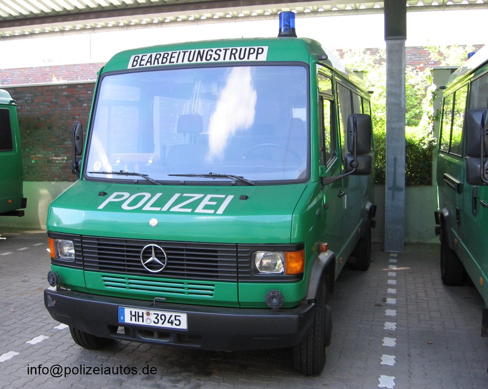 Zum "Bearbeitungstrupp"-Fahrzeug umfunktionierter Gruppenkraftwagen der Bereitschaftspolizei Hamburg.