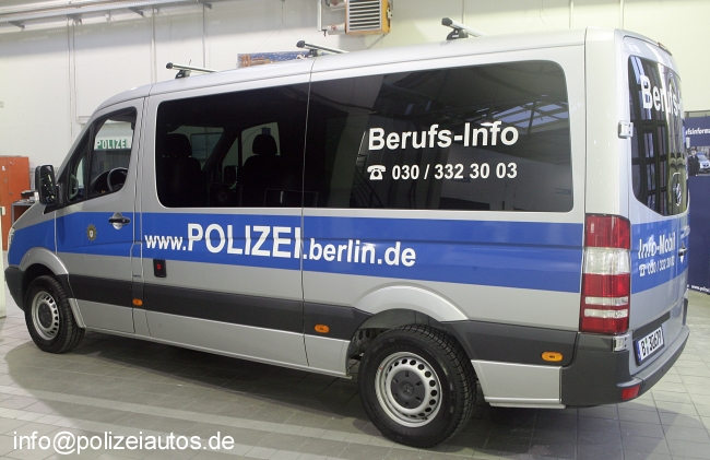 | Beschreibung: | Fotos der offiziellen Übergabe des neuen Info-Mobils der Berufsberatung. Die Ausstattung des erdgasbetriebenen Fahrzeuges ermöglicht es u. a., dass Interessenten künftig durch Einsatz eines internetfähigen Laptops das neue Online-Bewerbungsverfahren und die Voraussetzungen für eine Einstellung bei der Berliner Polizei näher gebracht werden können. Fotos: Polizei Berlin |