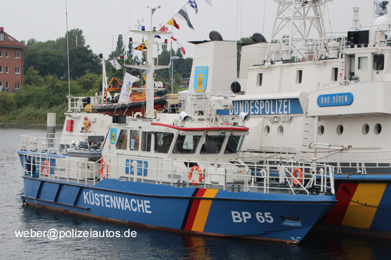 Dieses Boot wurde 2008 von der Schiffs- und Entwicklungsgesellschaft Tangermünde mbH gebaut. Technische Daten: Länge: 22,90m Breite: 5,20m Höhe: 3,20 m / 2,60 m Tiefgang: 1,20m Antriebsleistung: 2 x 588 kw Geschwindigkeit: max.23 Knoten Besatzung: 4 Beamte Das zweite Foto zeigt das Boot 2014 in der neuen Farbgebung. Schwesterschiffe: BP 61 "Prignitz", BP 62 "Uckermark", BP 63 "Altmark", BP 64 "Börde" |