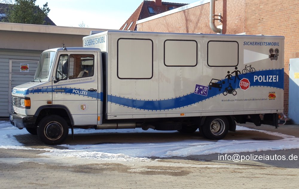 Sicherheitsmobil der Polizei Schleswig-Holstein im neuen Design, vormals in silber/