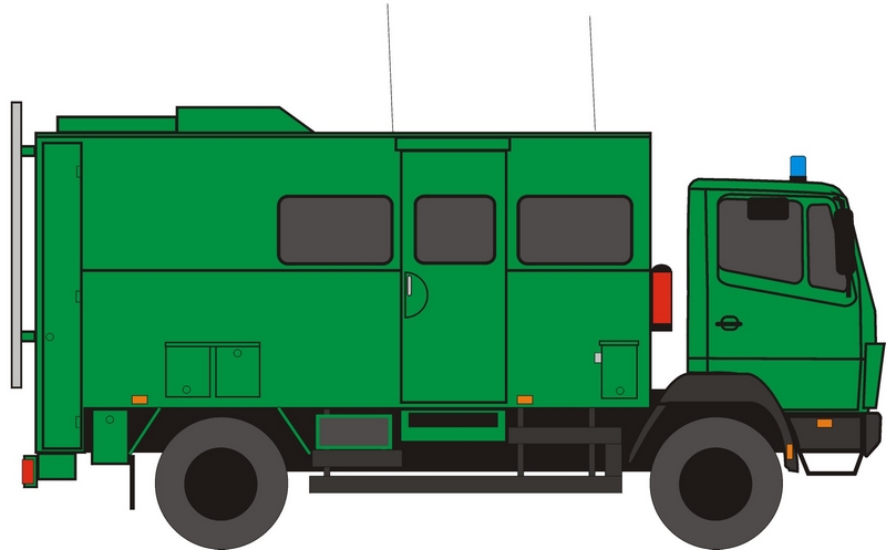 Fahrzeug für den Aufbau von Fernmeldeverbindungen. Bitte beachten Sie die Hinweise in der