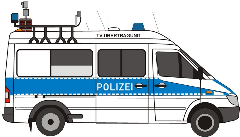 Dieses Fahrzeug überträgt Livebilder von Einsätzen in die polizeiliche Leitstelle. Bitte beachten Sie die Hinweise in der