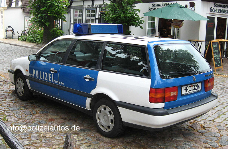 Funkstreifenwagen in Rostock-Warnemünde im klassischen Design, jedoch neu mit blauen Folien beklebt.