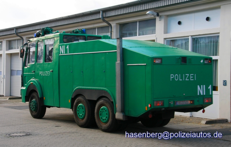 | Beschreibung: | Bundeseinheitlicher Wasserwerfer 9000, das Fahrzeug hat nun auch die neue Kennung NI1 erhalten. Im November 2012 wurde der WaWe mit LED-Frontblitzern nachgerüstet. Im Juni 2015 wurde der Wawe 9000 durch diesen Wawe 10000 -NI 1- ersetzt. |
