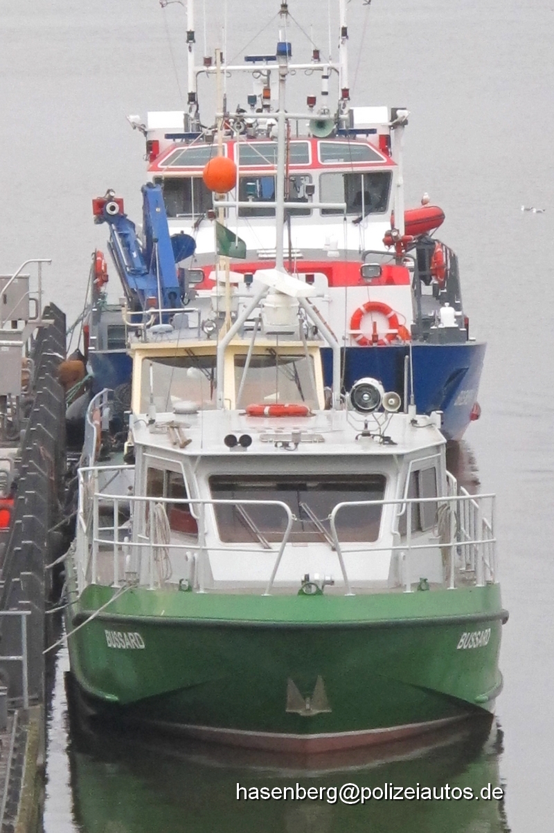 Zollboot "Bussard", im Hafen in Bremen. Das Zollboot Bussard wurde als "Freistaat Sachsen" von Bad Schandau aus auf der Elbe eingesetzt und dort schon nach kurzer Zeit in "Schöna" umgetauft. Im Zuge der EU-Osterweiterung wurde das Boot 2004 nach Bremen verlegt und nach einigen Modifizierungen (u.a. Umbau für Seeschifffahrtsstraßen) zum Zollboot "Bussard" umgetauft. Es ersetzt das 1973 gebaute Zollboot Kormoran. Das Zollboot Bussard wurde 1997 in der Menzer-Werft in Hamburg gebaut und besitzt einen Wasserstrahl(Jet-)Antrieb.