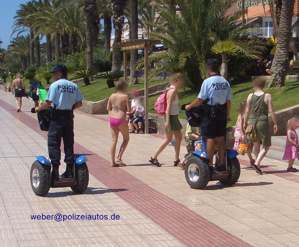 Segway-Doppelstreife der Policia Local, auf einer Strandpromenade, auf Teneriffa.
