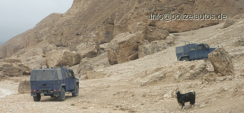 Geschützter Sonderwagen im Auslandseinsatz in Afghanistan. Hier unterwegs auf Patrouille in den kargen Bergen...