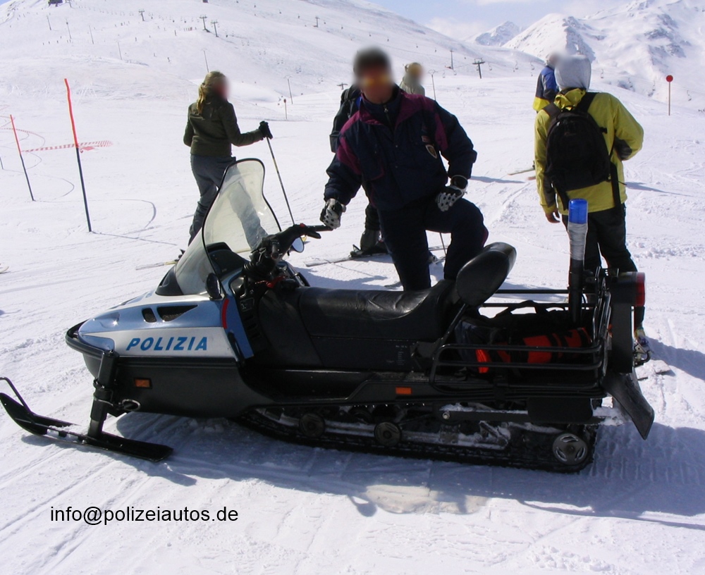 Motorschlitten - Schneemobil der POLIZIA in den ital. Alpen.