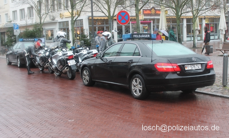 | Beschreibung: | Feldjägereskorte anlässlich der Trauerfeier für den verstorbenen Bundesverteidigungsminister a.D. Peter Struck am 03.01.2013 in Uelzen. Verwendet wurden Einsatzfahrzeuge vom Typ Mercedes-Benz (W212) E-Klasse Facelift und Krafträder vom Typ BMW R 1200 RT (Facelift) |