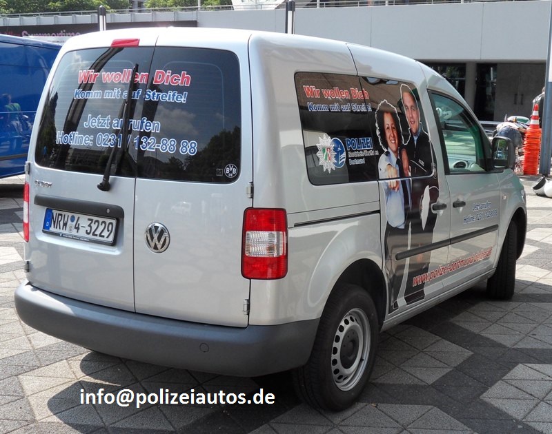 Fahrzeug der Polizei Dortmund, beklebt mit Nachwuchswerbung.