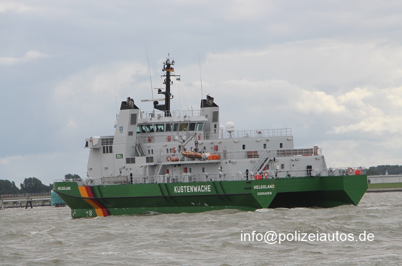 | Beschreibung: | Zollkreuzer Helgoland in SWATH-Bauweise. Technische Daten: Schiffstyp: Zollkreuzer, SWATH-Bauweise, Bauwerft: TKMS Blohm + Voss Nordseewerke, Stapellauf: 2009 Länge: 49,35m Breite: 19,00m Tiefgang max 4,55m Verdrängung: ca. 1000 Besatzung: 14 Mann Maschine: dieselelektrisch Dieselgeneratoren: 4 x MTU 16V 4000 M 40B à 2.200 kW (4 x 2.992 PS) Elektrische Antriebsmotoren: 2 x Siemens, Asynchronmotoren à 3.800 kw (2 x 5.168 PS) Elektrisches Fahrnetz: 690 V/60 Hz AC mit zwei Frequenzumrichtern Bugstrahlruder: 300 kW Maschinenleistung: 11.965 PS (8.800 kW) Geschwindigkeit: max. 20 kn (37 km/h). Tochterboot KEGELROBBE Fotos 1-3: sojus31 Das Schwesterschiff gibt es HIER zu sehen. |