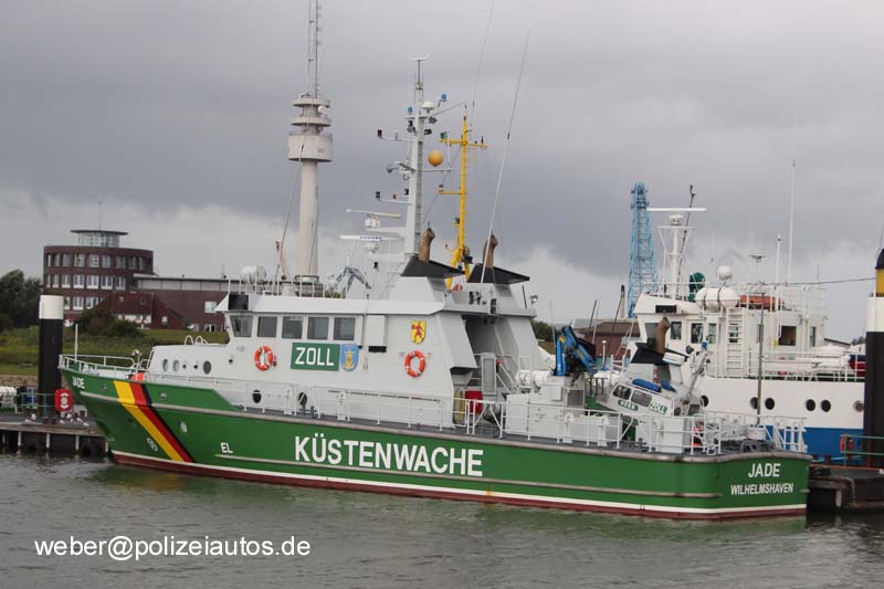 (Länge: 28,0m, Breite: 6,0m) mit Tochterboot "Hörn" am heimatlichen Anleger in Wilhelmshaven.