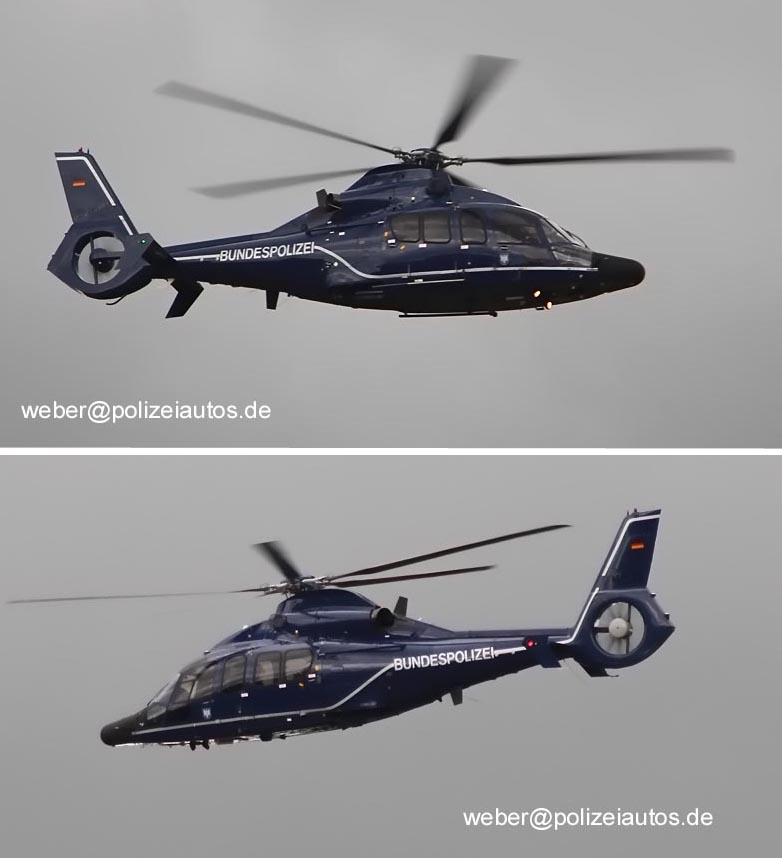 Bundespolizei-Hubschrauber EC 155-B, hier während der Flugphase, mit eingezogenem Fahrwerk.