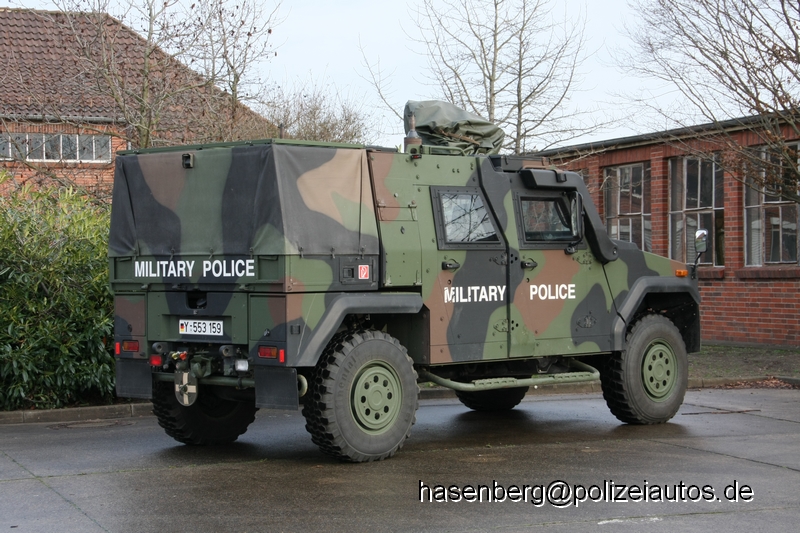 An allen vier Fahrzeugseiten wurde die internationale Bezeichnung "Military Police" angebracht. Das Fahrzeug verfügt über keine Sondersignalanlage. Hersteller ist die Schweizer Firma General Dynamics European Land Systems |