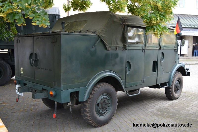 | Beschreibung: | Fernsprechbaukraftwagen (le Fekw Bau) für die Herstellung von Telefonverbindungen Das Fahrzeug gehört heute zum Bestand des BGS-Museums Rosenheim. |