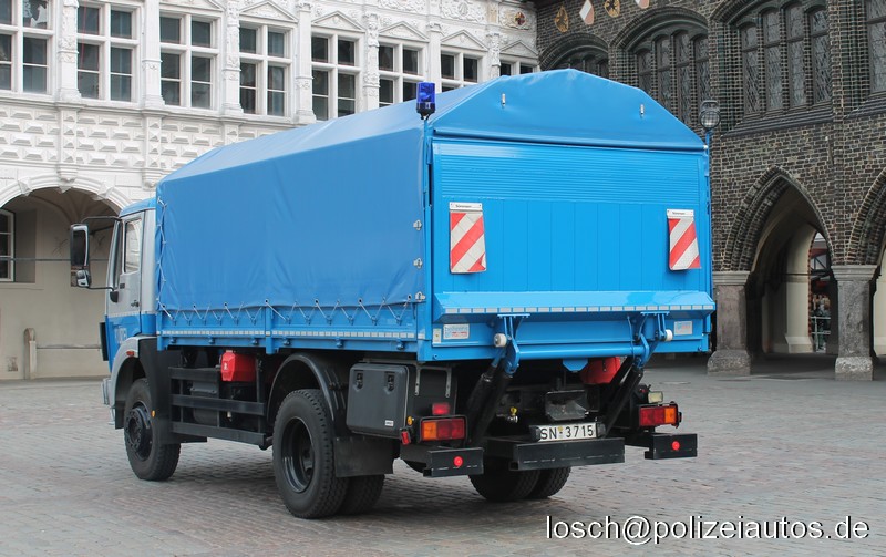 Beschreibung: | Lastkraftwagen mit Ladebordwand der Bereitschaftspolizei Mecklenburg-Vorpommern. Die ehemals grün lackierten Fahrzeuge wurden inzwischen dem mecklenburgischen Design angepasst. Eingesetzt werden sie u.a. zum Transport von Hamburger Gittern. |