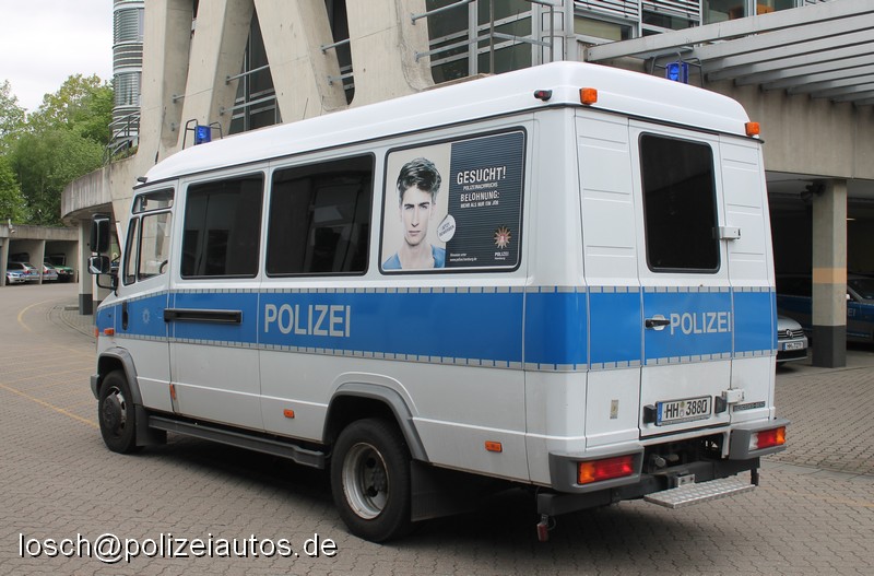 | Beschreibung: | Bundeseinheitlicher Gruppenkraftwagen (Grukw V) der Bereitschaftspolizei Hamburg, ausgebaut von Wietmarscher Ambulanz und Sonderfahrzeugbau. Das ehemals grün/weiße Fahrzeuge wurde inzwischen der aktuellen Farbgebung angepasst. |