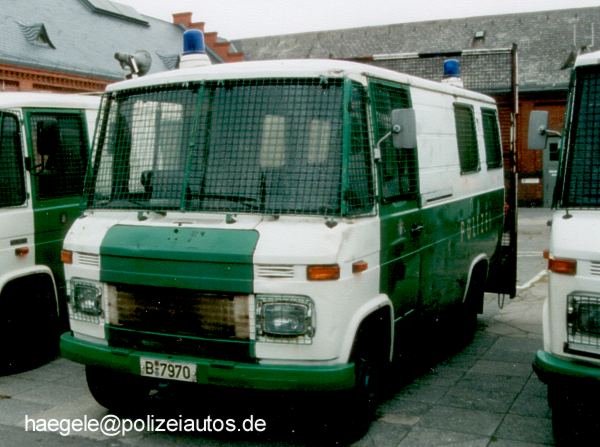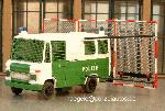 Absperrgitterkraftwagen. Wie das Fahrzeug in der Arbeitsstellung aussieht, wird am Modell im Maßstab 1:87 gezeigt.