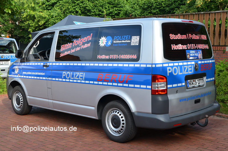 Fahrzeug der Polizei Steinfurt, beklebt mit Nachwuchswerbung.