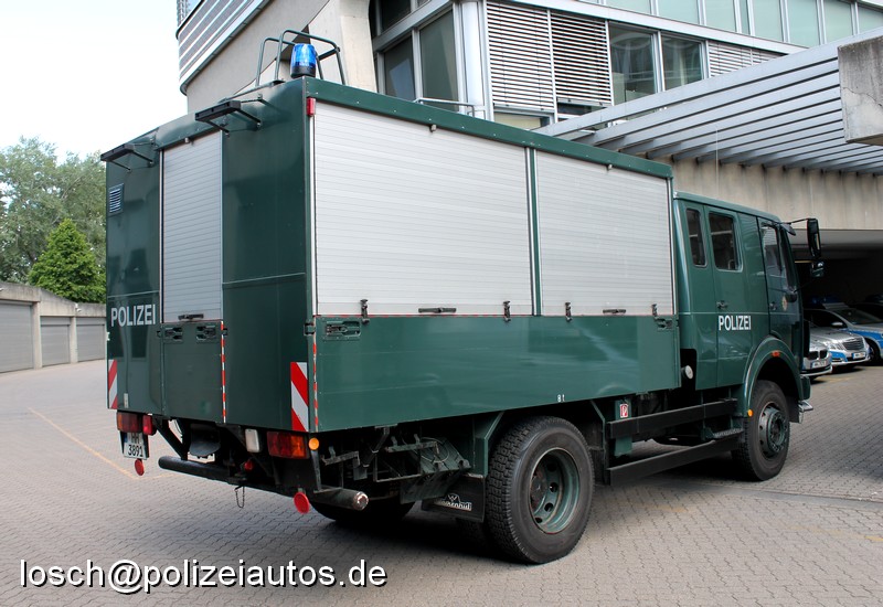 | Beschreibung: | Gerätegruppenkraftwagen (GGkw, Kfz 43/2gl) der Landesbereitschaftspolizei Hamburg. Der Aufbau stammt von Wackenhut. Dieses sich schon länger im Dienst befindliche Fahrzeug wurde Ende 2014 mit neuen Sondersignalanlagen (Xenon-Blitzleuchten, Frontblitzer) ausgestattet. |