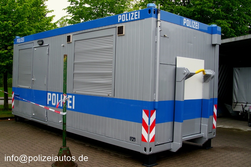| Beschreibung: | Mobile Wache / Befehlsstelle auf Basis eines Abrollcontainers. Dieser Austauschbare Ladungsträger (ATL) wurde in 2017 optisch, sowie technisch aufgearbeitet, u.a. wurden auf dem Dach vier Blaulichter montiert. Fotos und Info: I. Kröning |