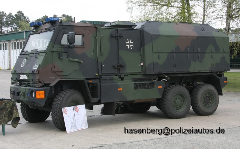 Dieser Fahrzeugtyp wird bei der Bundeswehr als YAK bezeichnet. Es wurden für CRC Einsätze im Ausland mehrere Mehrzeckaufbauten "Gefangenentransport" beschafft. |