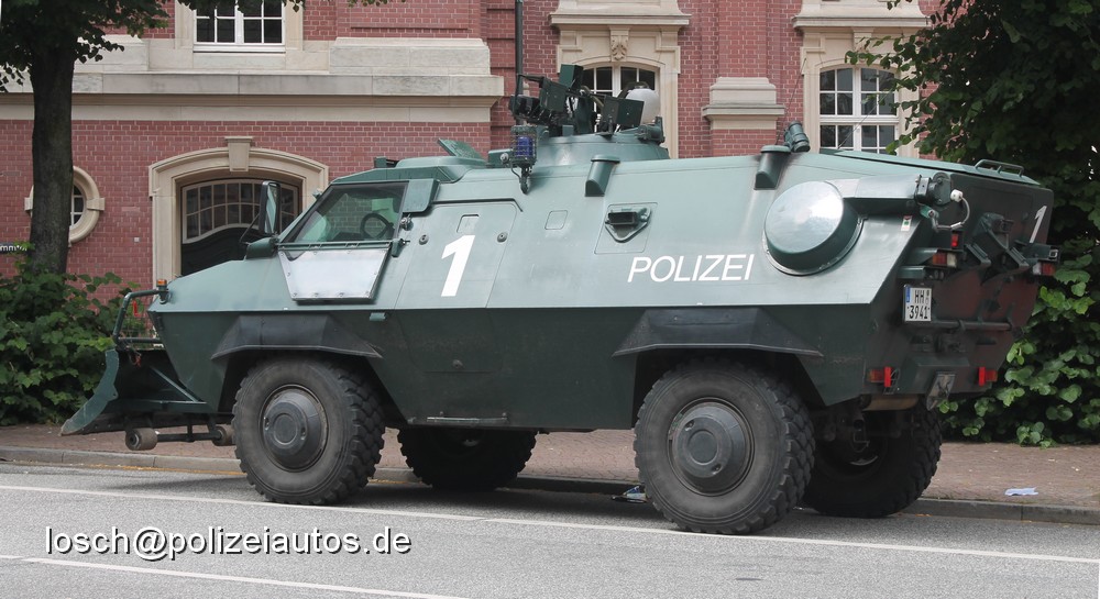 | Beschreibung: | Bundeseinheitlicher Sonderwagen 4 der Bereitschaftspolizei Hamburg. Bei dem aus dem Bestand der Bundespolizei stammenden Fahrzeug wurde der Lichtaufsatz nachträglich mit 5 LED-Scheinwerfern versehen, am Heck wurde eine Rückfahrkamera installiert. Im Gegensatz zu diesem SW 4 sind hier keine LED-Blaulichter montiert, ebenso fehlt der Hamburger Polizeistern. |