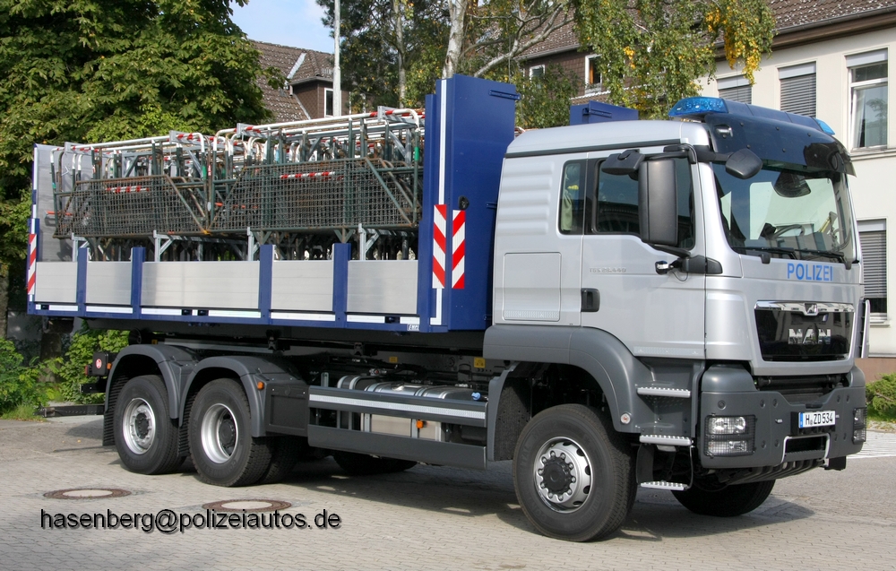 | Beschreibung: | Wechselladerfahrzeug der Polizei Niedersachsen.